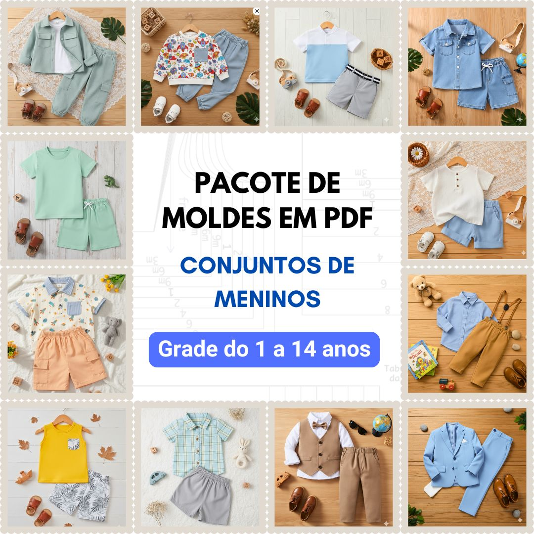 Neste pacote você receberá 14 modelagens com a grades de 1 a 14 anos